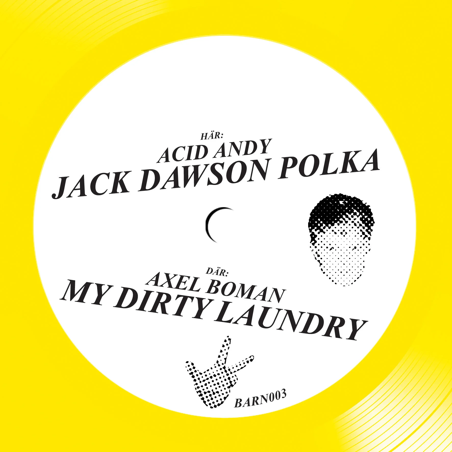 BARN 003 is a split single featuring two tracks – one a cut-up disco monster by our good friend from Gothenburg, Andreas Jonsson (or Acid Andy as his mother calls him) – the other a psycho killa trancehall jam from sweet old Boman himself.